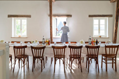 A 3-course meal with a hands-on cooking experience. Together in our open country kitchen, your team puts on aprons, creates the perfect Flammkuchen, and enjoys the results together.