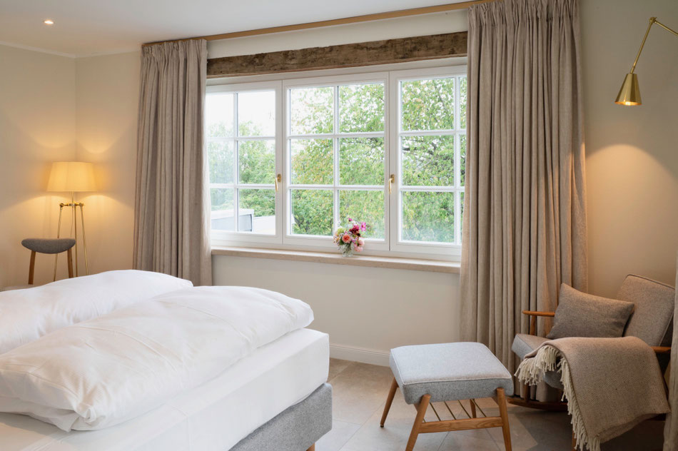 For your ultimate relaxation, each room offers a double bed (160 × 200 cm) with a high-quality Belgian mattress (no twin beds possible) and a summer and winter side for perfectly tailored sleeping comfort. Each bed is furnished with down pillows and duvets, and allergy-friendly alternatives are available on request.
