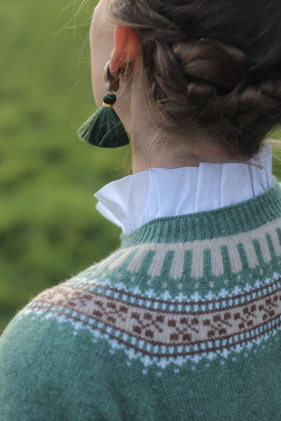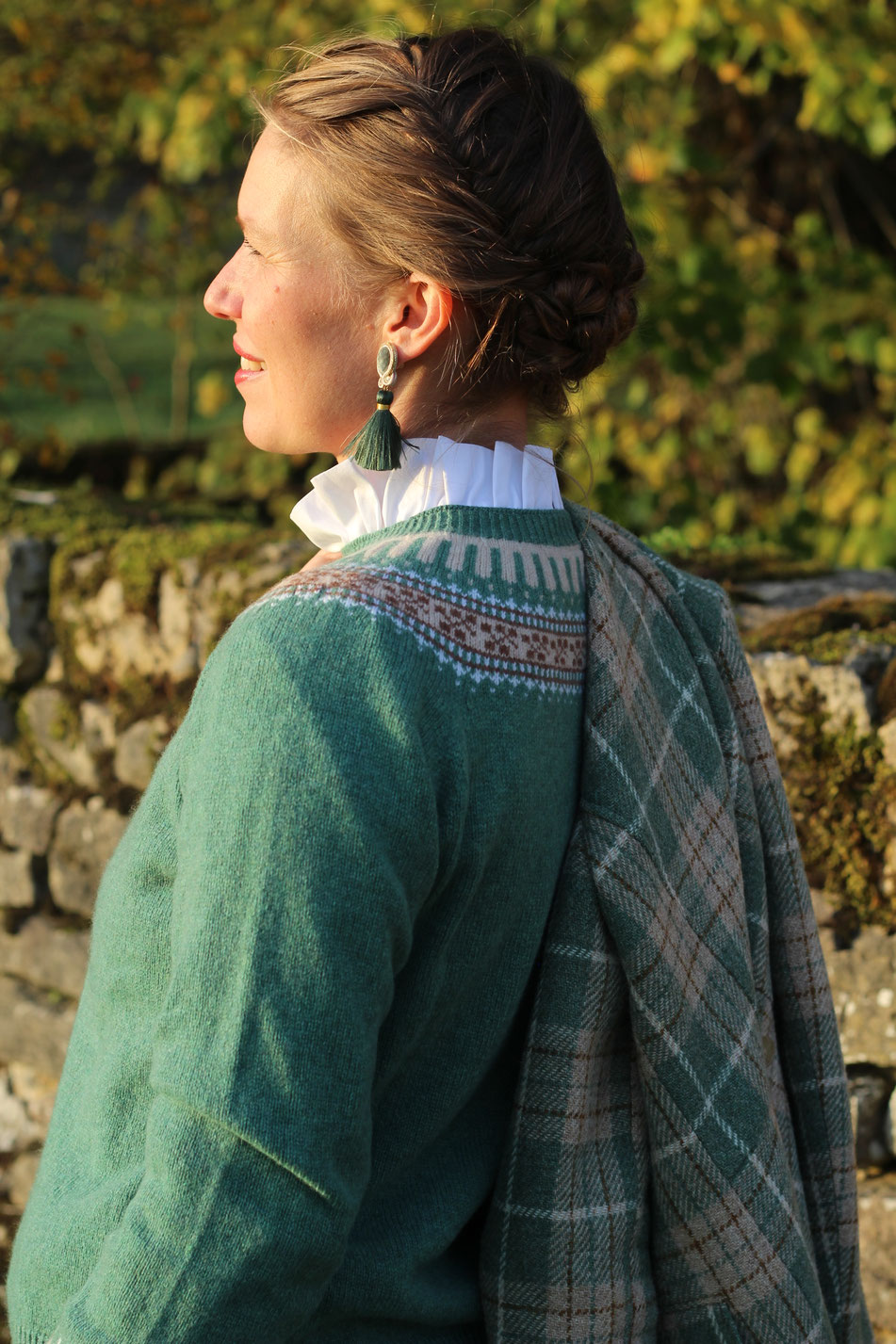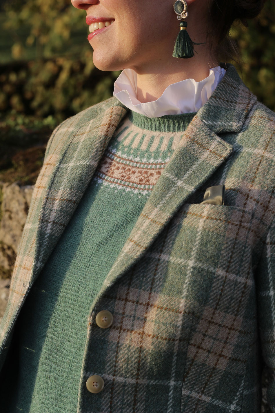 Curtains up for the second Hazelnut House Fair Isle sweater — now appearing in a radiant new shade of green! I can’t quite pinpoint the exact moment the idea arose to design our own Fair Isle pullover. Was it during a walk through the stormy Highlands? Over a cup of tea at the Fife Arms Hotel in Braemar? Perhaps. What I can say with certainty is that my fascination for Scottish sweaters with traditional Fair Isle patterns has lived in my heart for a very long time. I love garments that accompany me for years, that instantly put me in a very special mood the moment I put them on. And most importantly: garments that can tell a story.