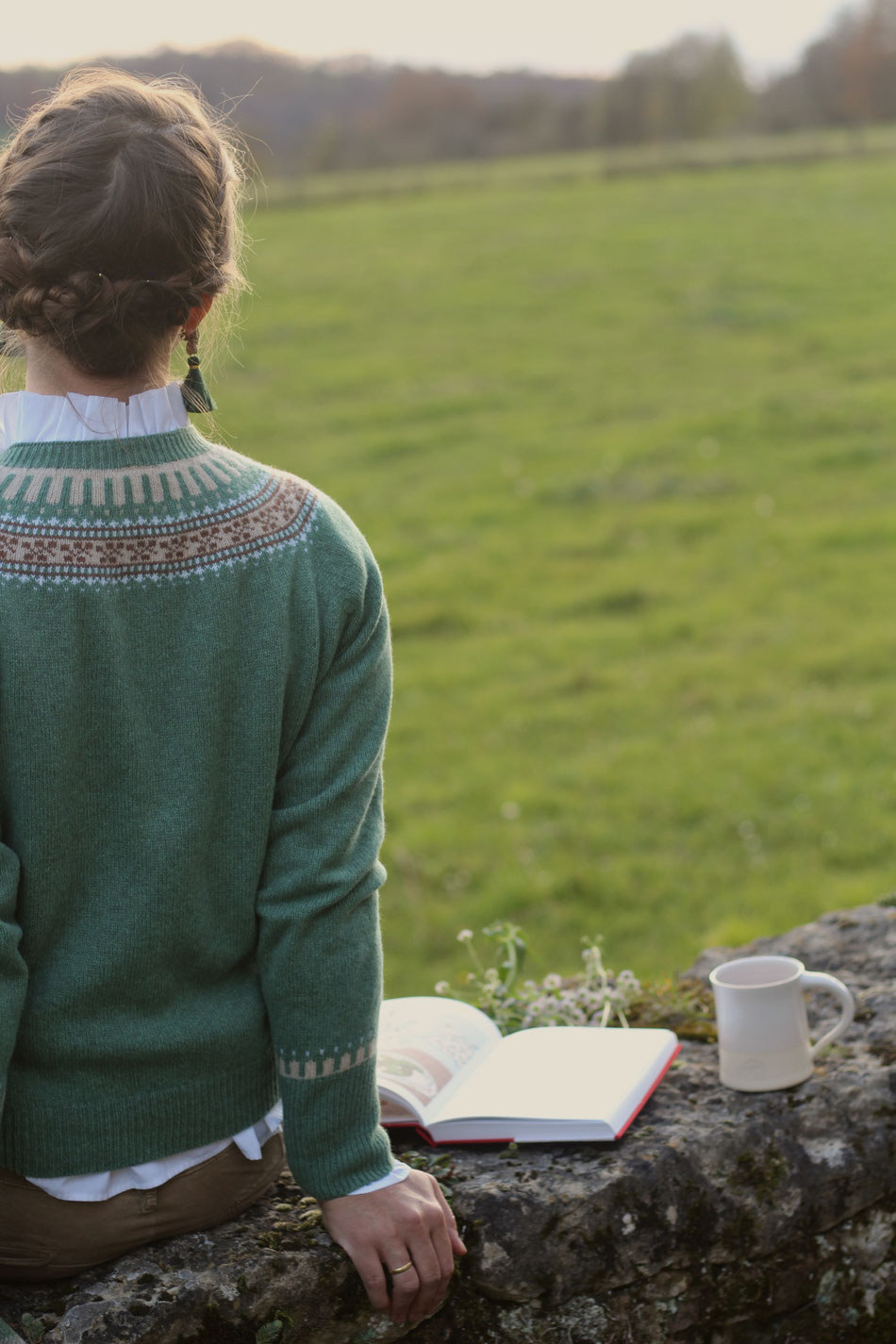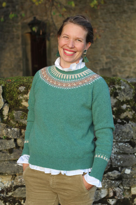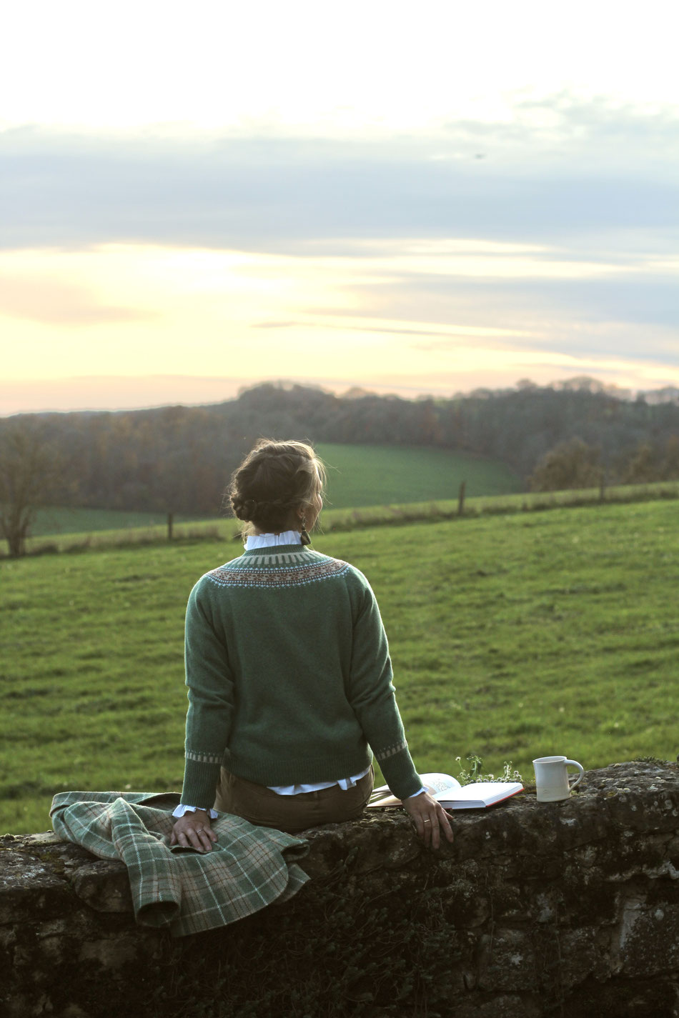 Curtains up for the second Hazelnut House Fair Isle sweater — now appearing in a radiant new shade of green! I can’t quite pinpoint the exact moment the idea arose to design our own Fair Isle pullover. Was it during a walk through the stormy Highlands? Over a cup of tea at the Fife Arms Hotel in Braemar? Perhaps. What I can say with certainty is that my fascination for Scottish sweaters with traditional Fair Isle patterns has lived in my heart for a very long time. I love garments that accompany me for years, that instantly put me in a very special mood the moment I put them on. And most importantly: garments that can tell a story.