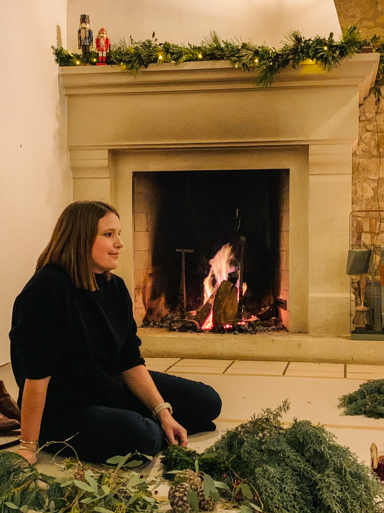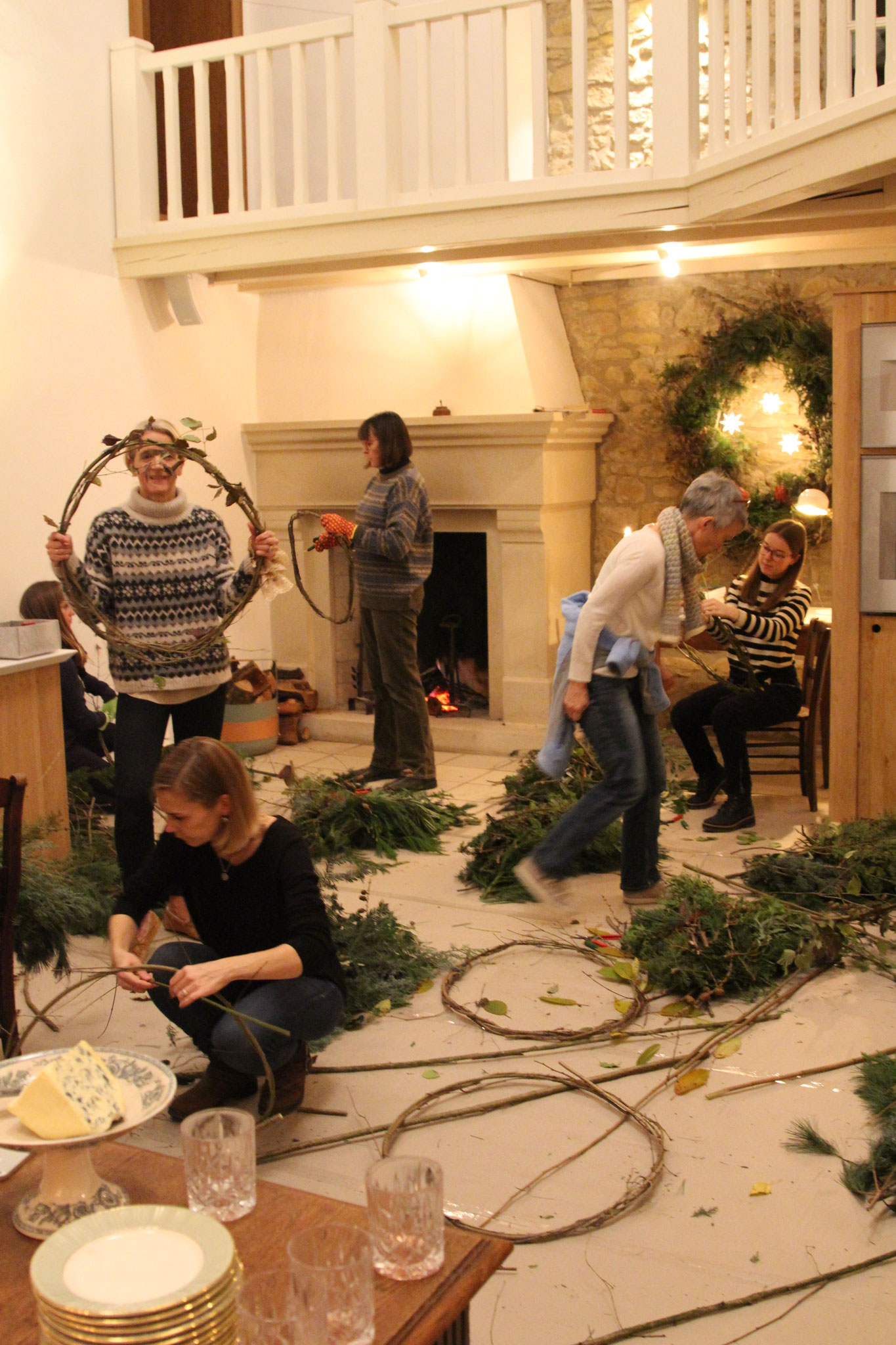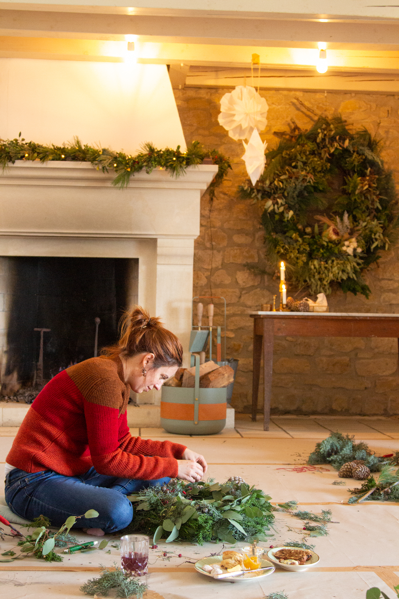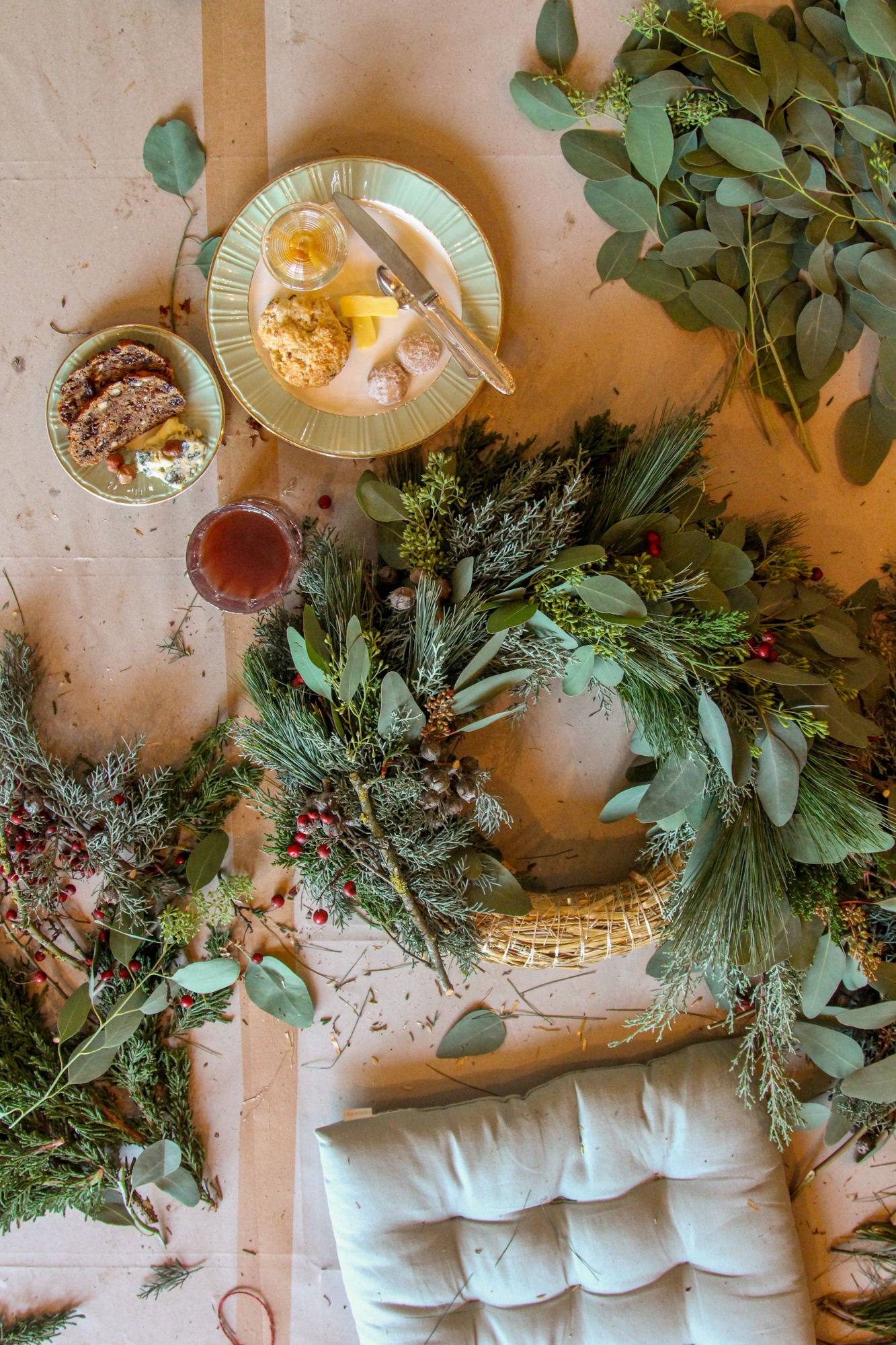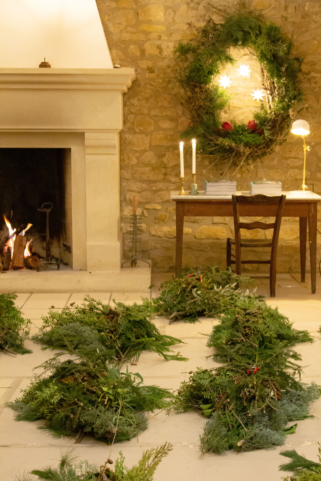 From outside, the laughter of arriving guests drifts in. “Welcome!” I hear myself calling — a favourite word of mine. The fire crackles in the sandstone fireplace, and together we enjoy warm scones with steaming tea. Afterwards, we begin our creations. The combination of different greens, flowers, cones, and even feathers transforms into the most wonderful Christmas wreaths under our hands. Each wreath becomes a unique, enchanting masterpiece.