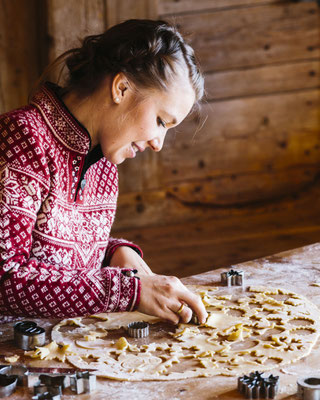 It’s the first Advent, and the small hotel on the hill is immersed in a romantic Christmas atmosphere. How wonderful it is at this time to bake together and make ourselves cozy! We transform the kitchen of Hazelnut House into a charming Christmas bakery and bake a delightful selection of pastries. The scent of cardamom, cinnamon, and star anise fills the entire house, while mulled wine steams gently on the stove.